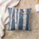 Paar van rode kardinalen in een berkenboom met sneeuwvlokken op een sterrenblauwe achtergrond.