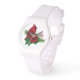 Door de hand getekende rode kardinaalvogel op een kerstbouquet van vlindertakken poinsettia en rode bessen