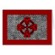 Een rood Keltisch kruis op een zwart-witte vervallen achtergrond
