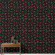 Bold rockabilly thema jaren 1950 retro peel en stick wallpaper, patterned met rode kersen en witte stippen op zwart