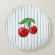Rode Kersen op Blauwe Strepen Patroon Rond Kussen