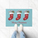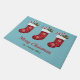 Rode kerstkaarten op blauw met aangepaste tekst deurmat