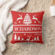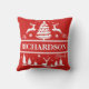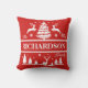 Rode Kerstmis familienaam | Aangepaste naam Monogr Kussen