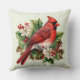Een prachtige kerst rode kerst kardinaal zitten in een tak van poinsettias en heilige bessen. Achtergrond is een groen linnen Design is aan beide zijden van het kussen