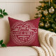 Voeg charme toe aan uw kerstdecor met deze feestelijke accentuering. Cranberry red design is voorzien van een cirkelvormige logo in witte monoline typografie, voor "Gold's exotische specerijen, gespecialiseerd in Frankincense & Myrh." De piloot keert aan rode en witte verticale grainsack strepen terug.