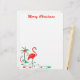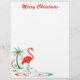 Een leuk, feestelijk, flamingo design met een retro-touch in rood en groen. Een rode flamingo waait in het water naast een palmboom met kerstbubbels en lint. Een aanpasbaar ontwerp dat u kunt aanpassen aan uw eigen tekst, afbeeldingen en ideeën. Een oorspronkelijk digitaal afbeelding gemaakt door Jess Perry.