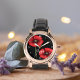Rode klaproos bloemen op zwart gepersonaliseerd horloge