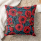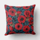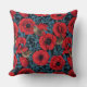 Rode klaprozen en wratten, blauwe bladeren op zwar kussen