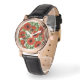 Rode klaprozen en wratten, groene bladeren op wit horloge