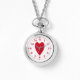 Ketting Horloge cadeau. Met een rood liefdeshart en kloknummers op een witte achtergrond.