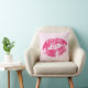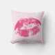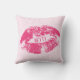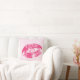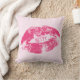Rode lippen over lichtroze bloemdamast patroon kussen