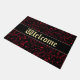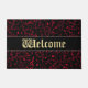 Rode Muzieknoten deurbevestigingsmat. Een rolend bloempatroon van muzieknoten en spleetjes in een Scarlett Red op zwart. Elegant, muziekdecor, klaar om te mengen en bij te passen voor uw huis, studio of speciale evenement. Verander de tekst in om het even wat u wilt, of verlaat het zoals is, een eenvoudig welkom. Als u het in meer dan een woord of twee verandert, kunt u de aanpassingsknoop moeten klikken en de tekst kleiner maken om te passen. Het is makkelijk om te doen.