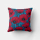 Rode papavertuin op blauw kussen