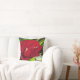 Rode pioenroos bloem met groene bladeren, vierkant kussen