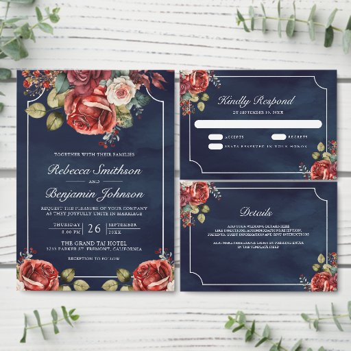 Navy Blue Red Roses Wedding SuiteOntworpen door Shabbir D