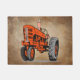 Een rode trekker op een grijze achtergrond.