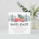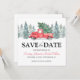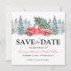 Rustieke winter bruiloft save the date kaarten met een eenvoudige witte achtergrond, waterverf kerst sparren, een vintage rode truck, een kerstboom en een traditionele save the date template die gemakkelijk aan te passen is.