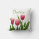 Een set rode tulpen bloeit op een witte achtergrond met je eigen naam in een gescripte groene lettertype.