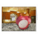 Rode uien zitten op een granietteller gesneden en klaar om te koken. Het origineel is een miniatuurschilderij van Kathie Miller