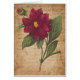 Een kunst van een rode bloem tegen een zachte bruine kleur met een antiek letter.