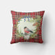 Het kerstseizoen vieren met een verbluffend traditioneel rood lichtkussens, met een kleine stierenvink die in een baard zit. Zoek ook het coördinerende metgezelstuk dat een rode kardinaal in een poot met pineconen afschildert.