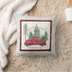 "Rode Vrachtwagen Merry Bright geruite Gnome Boerderij Hout, Sierkussen Home Decor." White Cottage houten schipachtergrond met rode, zwarte en grijze Christmas Plaid wordt gecombineerd met een retro rode boerderijen truck, een bos van bomen en de typografische tekst, "Merry & Bright." Waterverf kunstwerk door de internationaal geprezen gelicentieerde kunstenaar Audrey Jeanne Roberts, copyright.