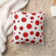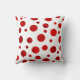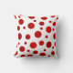 Kussen bedrukt met originele waterverf polka dotpatroon in tinten rood op witte achtergrond.