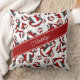 Deze girale volleybalteamkleuren werpen kussen met een patroon van gevarieerde grootte gestileerde rode, zwarte en witte volleyballen die elke manier om een volleybalnet grafisch - de rode en zwarte panelen van de volleyballen worden gemengd met een artsy, girale florale patroon - personaliseer haar naam in een verfijnde handgeschreven doopvont op een gewaagde, hoekige, volledige breedte rode kleurenstrip - de witte achtergrond en de kleurenstrip zijn aanpasbaar - door katz_d_zynes
