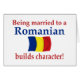 Dit "trouwen met een Roemeens bouwt karakter!" Het ontwerp met de Roemeense vlag is een van de vele originele Roemeense creaties van Worldshop.