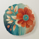 Roest en Turquoise Bloemen abstract Rond Kussen