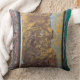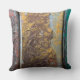 Een vierkante kussen met een koele, uitziende rustige textuur als achtergrond. Verticale strepen van rode gele en groene verfafwerking en afschilfering van een verouderde metalen wand. Ziet er oud en weed uit en vervaagd.