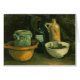 Aardewerk en twee flessen, Vincent van Gogh, Nuenen november 1884. Olieverf op doek, 40 x 56 cm. Pasadena, CA, Norton Simon Museum of Art. F 57, JH 539 Vincent Willem van Gogh (Amsterdam, 30 maart 1853 - aldaar, 29 juli 1890) was een Nederlands kunstschilder. Sommige van zijn schilderijen behoren nu tot 's werelds bekendste, populairste en duurste kunstwerken. retro schattige coole kleurrijke mooie artistieke, originele, elegante decor Post Impressionisme nog steeds leven fine art schilderen.