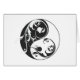 We hebben een prachtig scrollend yin & yang-symbool gemaakt in zwart-wit, groen en wit, oorrijk blauw en groen gepatterd design. Het ziet er geweldig uit op visitekaartjes, vliegers, overhemden...noem maar op. Zoals altijd, personaliseer met uw eigen bericht.