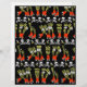 Zwart plakboekpapier met een herhalend ontwerp van de poten in geel en zwart gestreepte kousen, schaatsen met rode rollen en kniepaden. Stripe van schedels en killerbijen deelt de benen.
