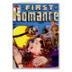 Hoesje uit een stripboek genaamd Eerste Romance. Het schoenen een piloot die een mooi meisje kust met een vliegtuigmonteur.
