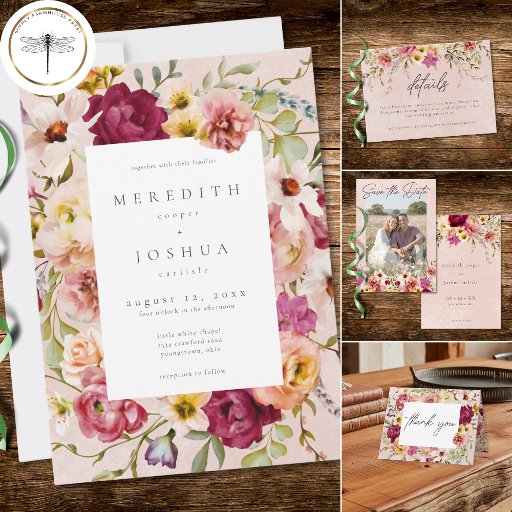 Romantic Burgundy Blush Floral Garden Wedding Save The Date