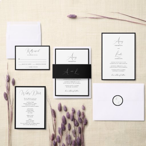 Romantic Classic White & Black Script Wedding Uitnodigingen Wikkel (Personaliseer de collectie van deze zelfstandige maker.)Romantic Classic White & Black Script Wedding Uitnodigingen Wikkel (Achterkant Voorbeeld)Romantic Classic White & Black Script Wedding Uitnodigingen Wikkel (Vlak)