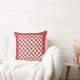 Een kikkerbuis of kussen met een patroon van romantische dieprode rozen op een ivoren achtergrond, voorzien van een passend patroon van ivoren 'stikken' op een dieprode achtergrond. Deel van het collectie van Posh & Painterly 'Hearts and Rozen.