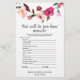 Dit romantische sprookje "ken je de bruid" is perfect voor een engelse vrijgezellenfeest met tuinthema's. Aan de voorkant van de gamekaart staat "hoe goed ken je de bruid" en aan de achterkant van de kaart staat "wat er in je tas zit". Het ontwerp is voorzien van roze, perzikkleurige en paarse waterverf rozen en pinda's die in een dikke florale lijst zijn aangebracht. Pas de voorzijde van de kaart aan met de bruidsnaam en de datum van het vrijgezellenfeest. Ontworpen met zorg door Miriam op Fresh & Yummy Paperie. Ga voor het coördineren van objecten naar mijn Zazzle winkel: