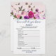 Deze romantische tuin "wat zit er in je handtas" is perfect voor een elegant vrijgezellenfeest. Aan de voorkant van de gamekaart staat "hoe goed ken je de bruid" en aan de achterkant van de kaart staat "wat er in je tas zit". Het ontwerp is voorzien van een dikke florale waterverf op een bleke roze achtergrond met blauw marinesleutel. U kunt de kleur van de achtergrond wijzigen om uw trouwkleuren aan te passen door op de knop "aanpassen" te klikken. Pas de voorzijde van de kaart aan met de naam van de bruid- en vrijgezellenfeest-datum.