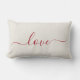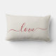 Romantische kussen met rood script dat "liefde" leest.