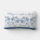 Een , romantische Lumbar Pillow om met uw eigen tekst en een Floral Patroon van de Grens in Indigo Blauw op een Witte achtergrond te personaliseren die u kunt aanpassen als u wenst. Deel van het collectie Posh and Painterly "Indigo".
