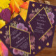 Romantische herfstdahlia bruiloft: herfstbladeren begeleiden een bloemig lijst in verschillende tinten paarse