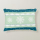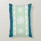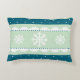 Kute kerstkussen met blauwgroen polka-punten en witte sneeuwvlokken op de groene achtergrond van de munt.