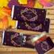 Romantische herfstdahlia bruiloft: herfstbladeren begeleiden een bloemig lijst in verschillende tinten paarse