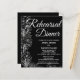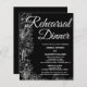 Romantische zwarte kalligrafie repetitiediner uitnodigingskaart. Deze romantische wilde bloemen zwarte kalligrafie repetitiediner uitnodiging is ideaal voor een eenvoudige huwelijksrepetitie. Het moderne klassieke ontwerp bevat fantasierijke krullen en prachtige, elegante handgeschreven witte typografie.
