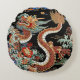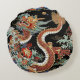 Dit ronde kussen heeft een Aziatische stijl draak op een zwarte achtergrond.
