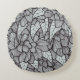 Ronde Bloem Print Sierkussen in Grijs en Zwart Rond Kussen