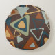 Een leuk rond kussen met een groovy mid-eeuws modern design, met overlappende driehoeken. In warme retro jaren zeventig kleuren. Leuk kleurrijk toss kussen dat een aanvulling is op de moderne, rustieke en eclectische inrichting. *Al mijn design zijn mijn eigen originele illustraties en kunst, dus onderworpen aan auteursrechtelijke bescherming. _________________________________________________