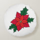 Rondwerpkussen met rode oranje kerstpunsettia, met donkergroene bladeren en een zwarte omtrek. Dit ontwerp wordt aan beide zijden van het kussen toegevoegd